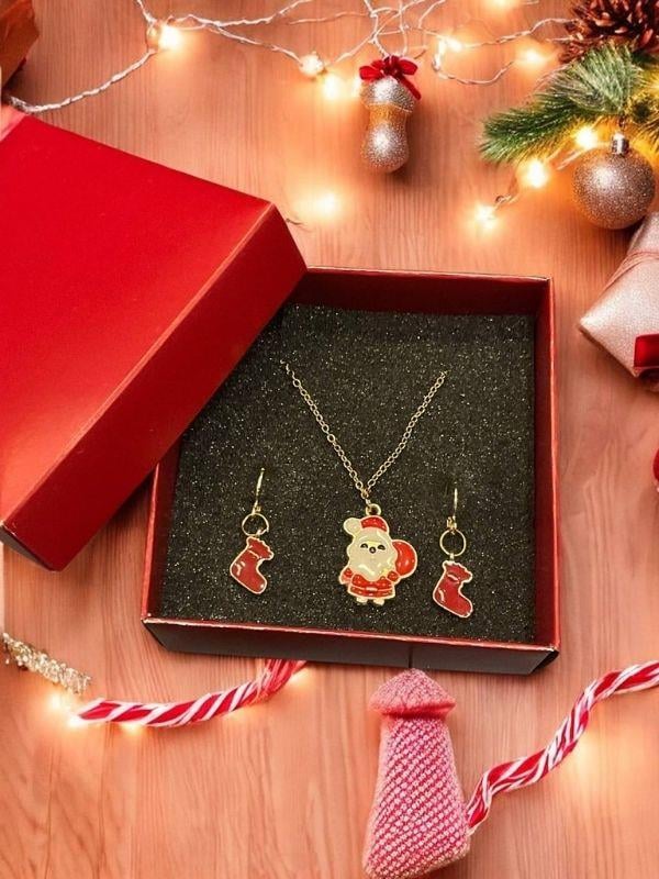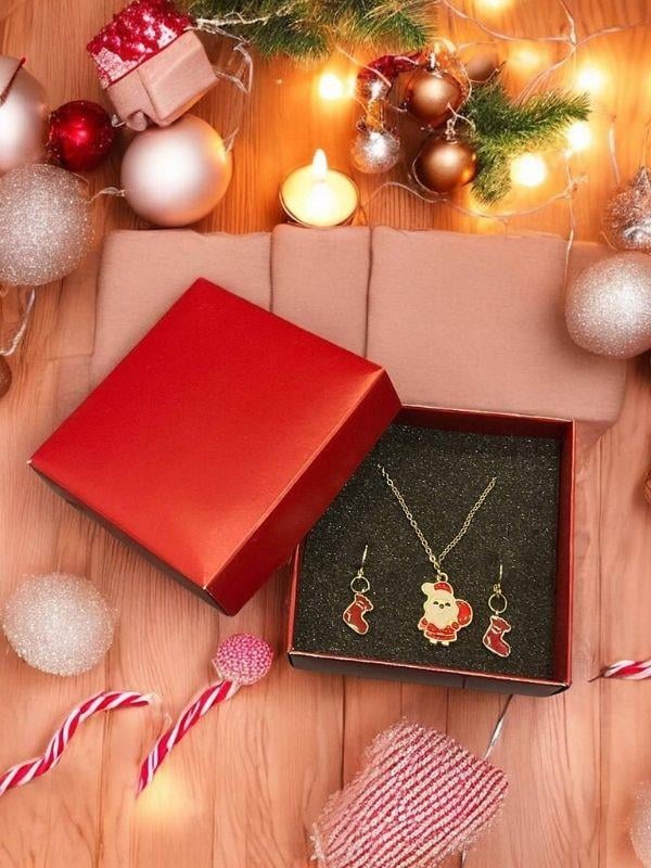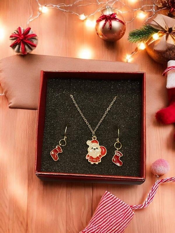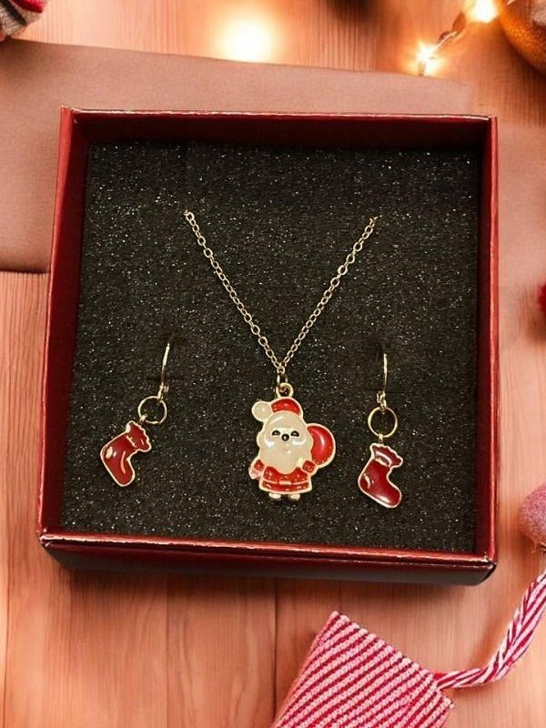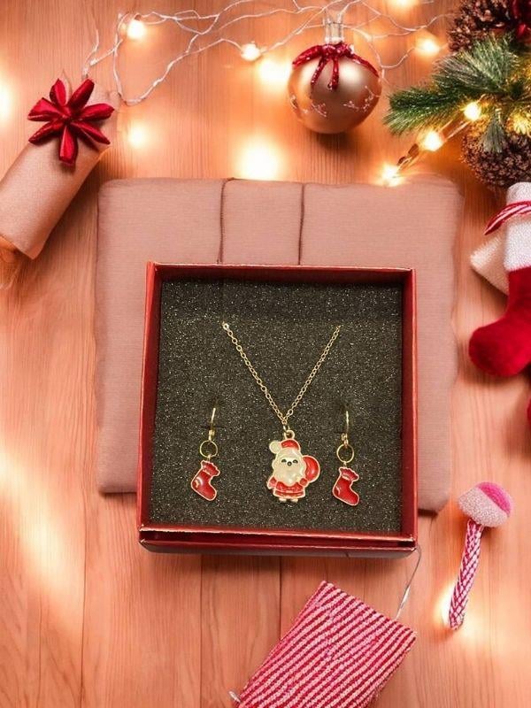 Yılbaşı Temalı Noel Babalı Kolye Küpe Tasarım Set (Kutulu)